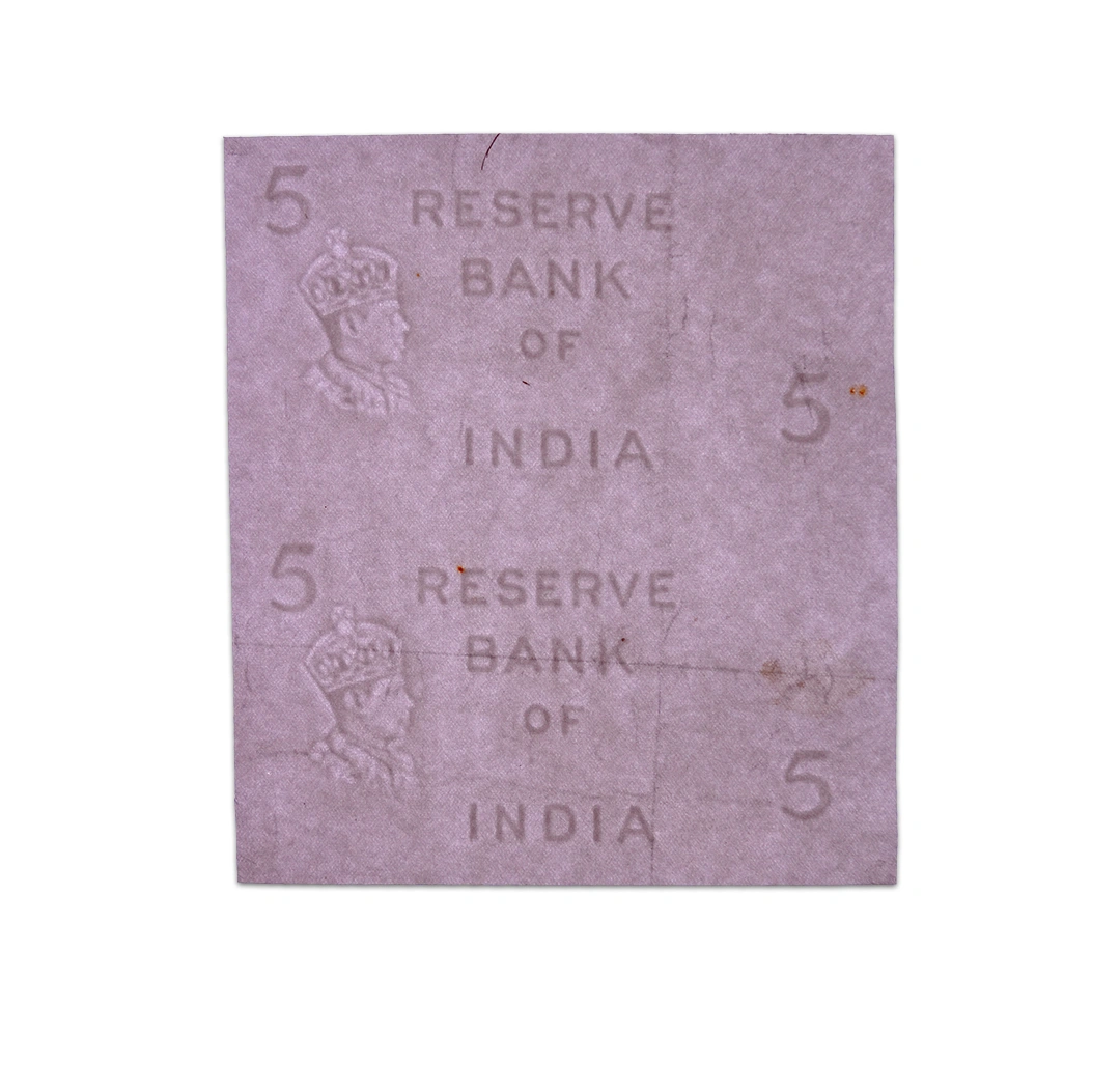 British India King George VI 5 Rupees 1938 Rare Watermark 2 Notes uncut sheet
