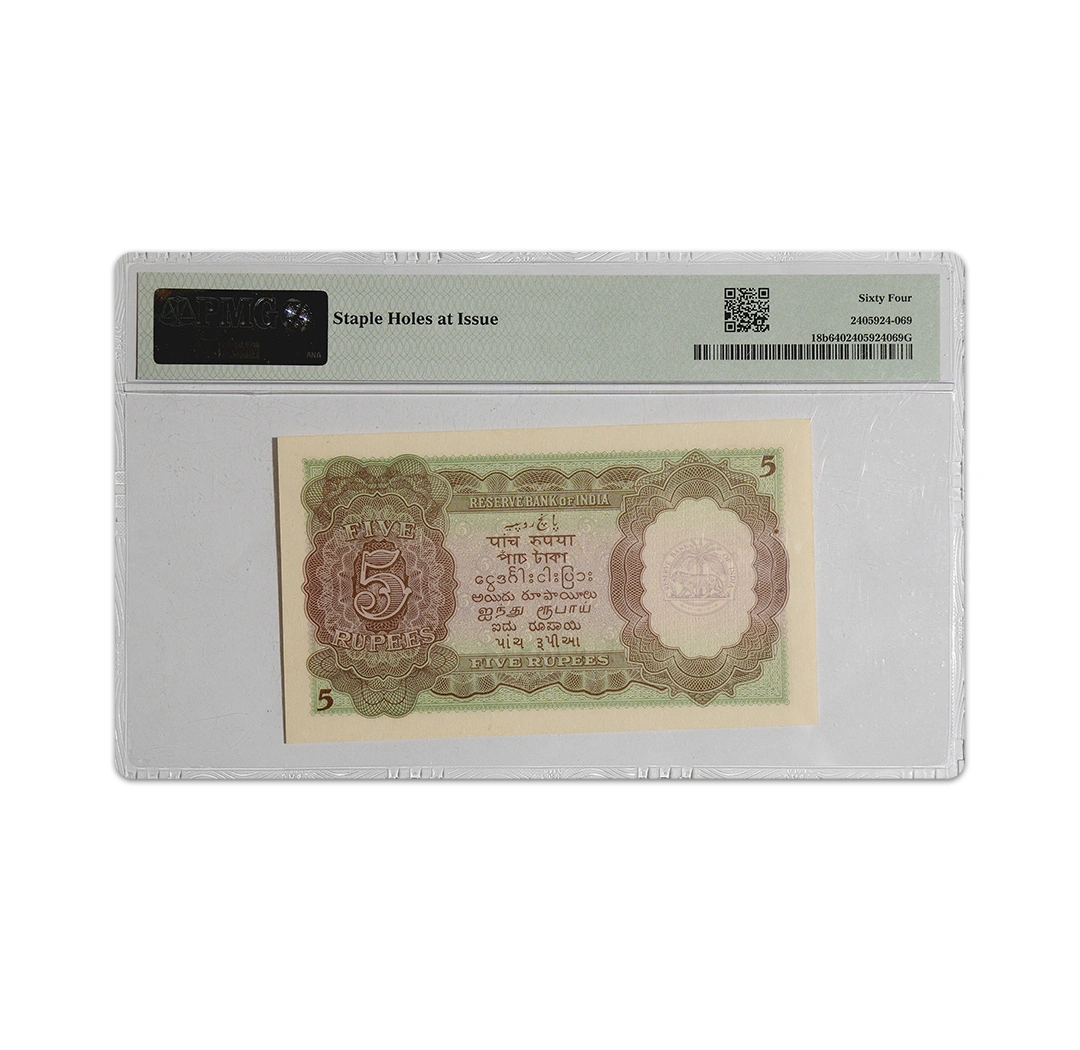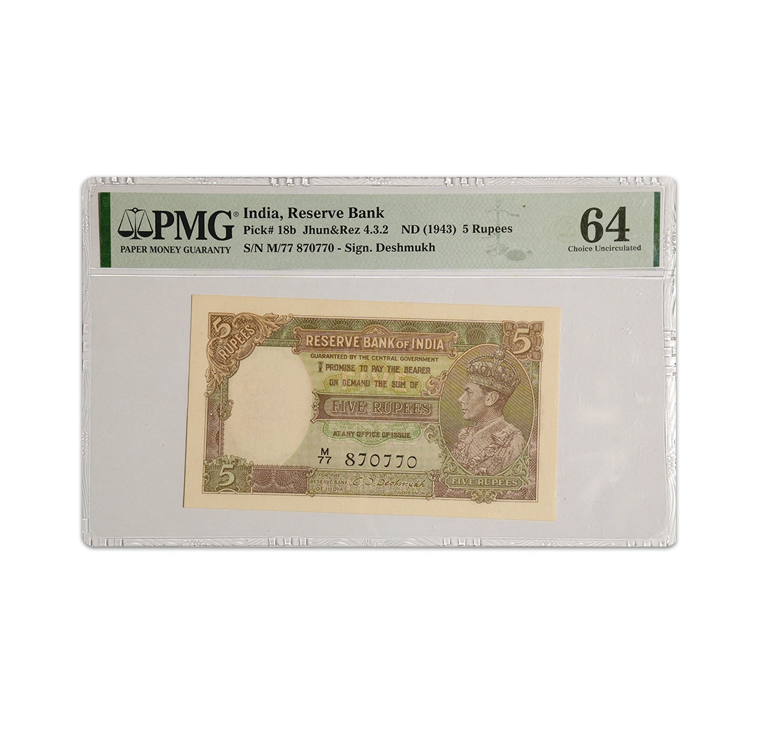 British India King George VI 5 Rupees 1944 CD Deshmukh P-18b