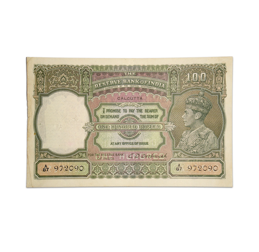 British India Rare 100 Rupees 1944 CD Deshmukh P-20e