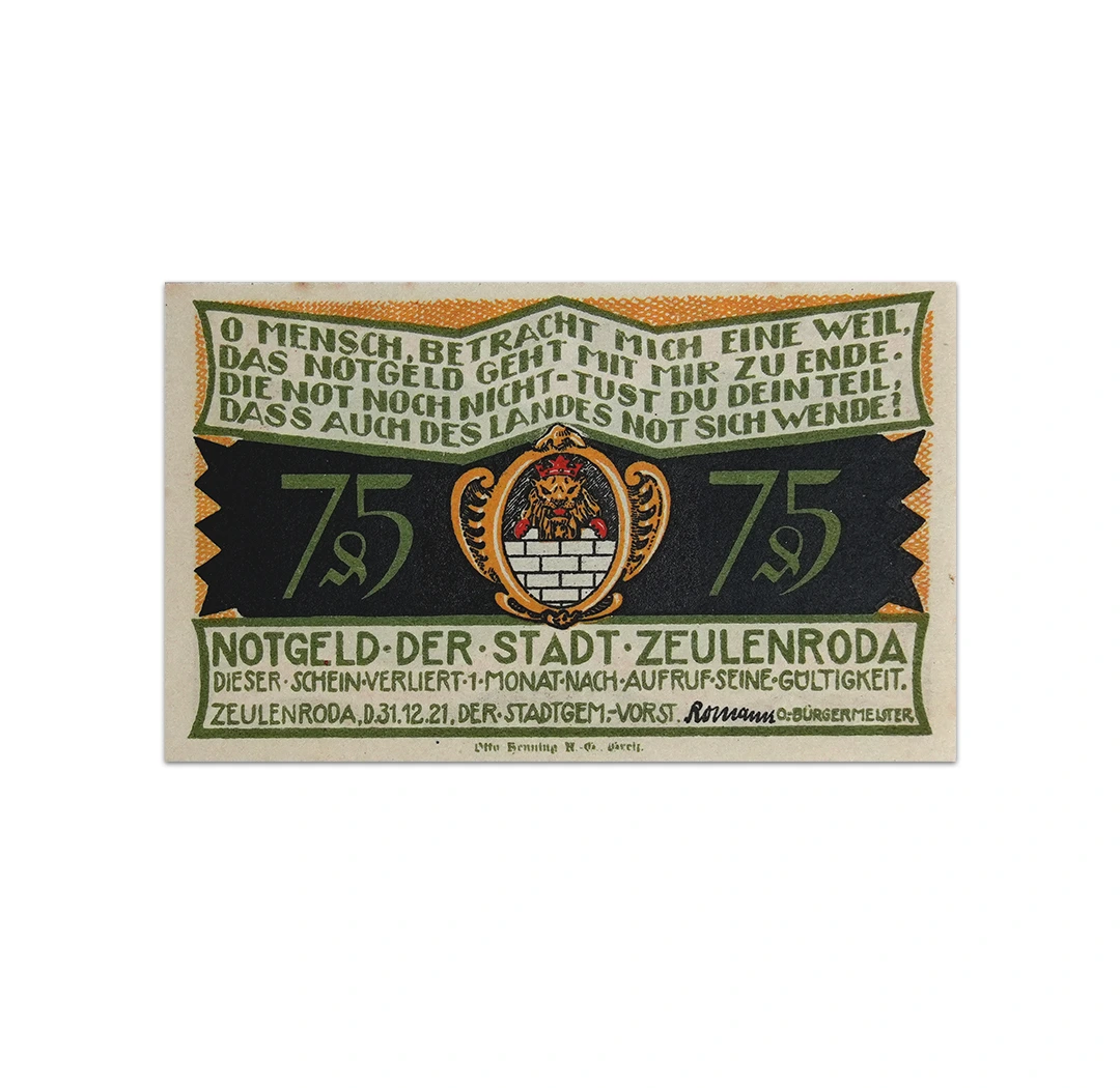 Germany 75 pfenning 1921 City of Zeulenroda Notgeld more than 100 years old