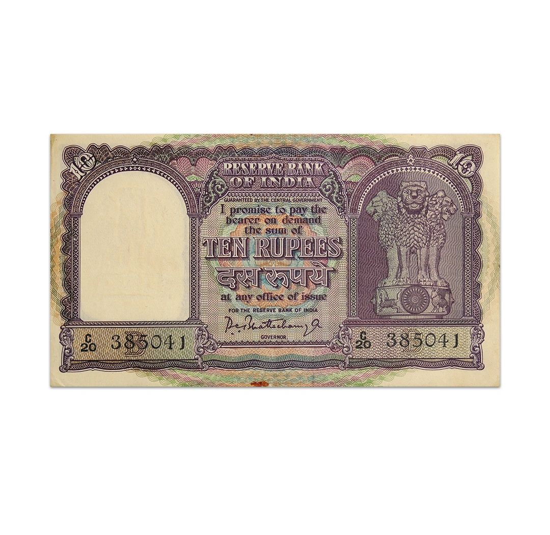 India 10 Rupees 1962 PC Bhattacharya B Inset P-40b