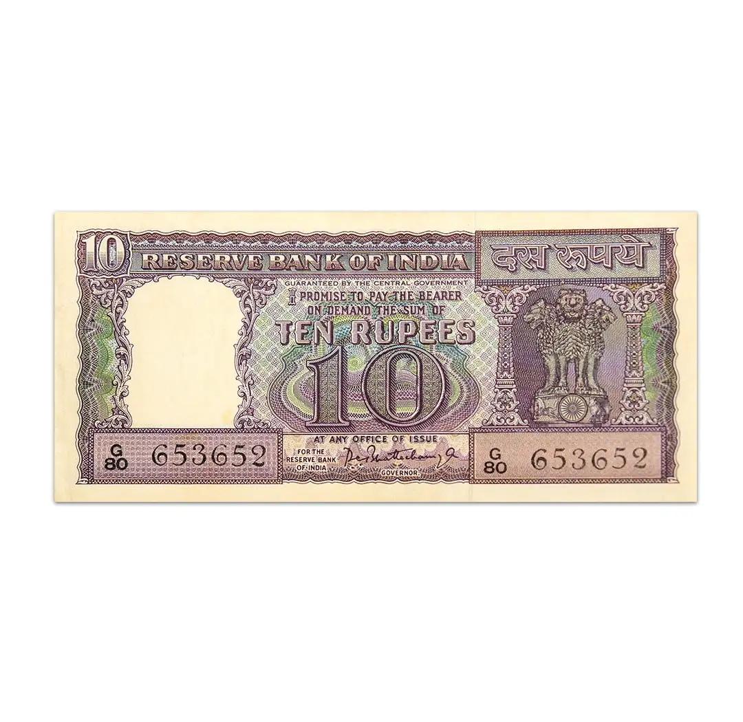 India 10 Rupees 1967 PC Bhattacharya Diamond Issue P-57a
