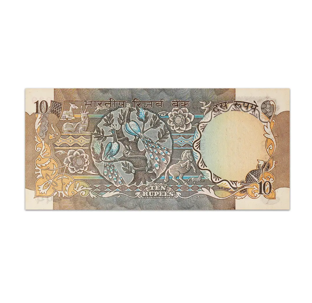 India 10 Rupees 1975 Peacock issue S Jagannathan P-81A