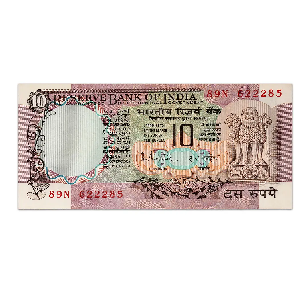 India 10 Rupees 1985 Peacock Issue RN Malhotra B Inset P-81G