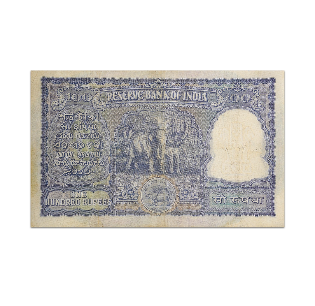 India 100 Rs Rare Fafda Elephant Issue B Rama Rau 1951 G2