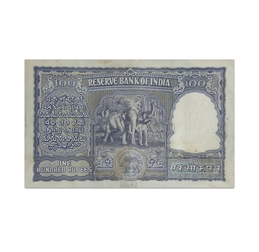 India 100 Rs Rare Fafda Elephant Issue HVR Iyengar 1953 G5