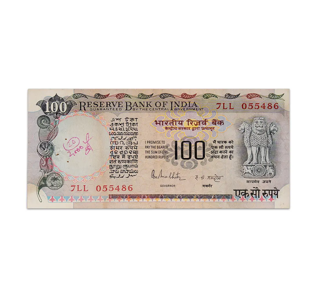 India 100 Rupees 1985-1990 Cobalt RN Malhotra P-85A