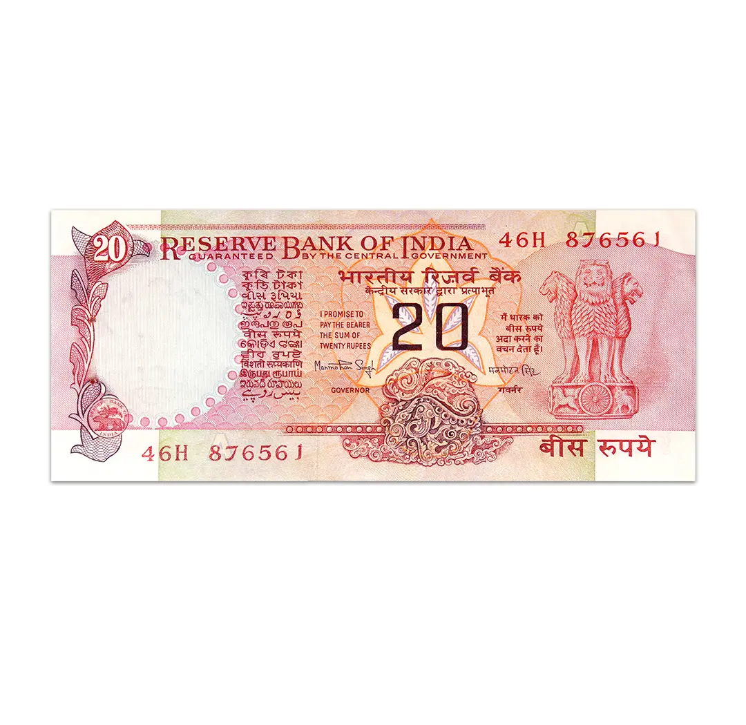 India 20 Rupees 1983 Manmohan Singh A Inset P-82f