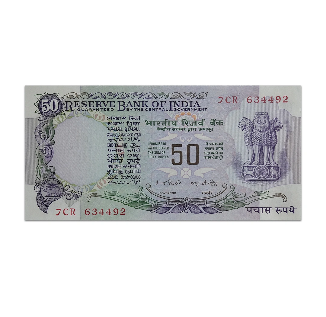 India 50 Rupees Purple Issue 1977 IG Patel P-83D
