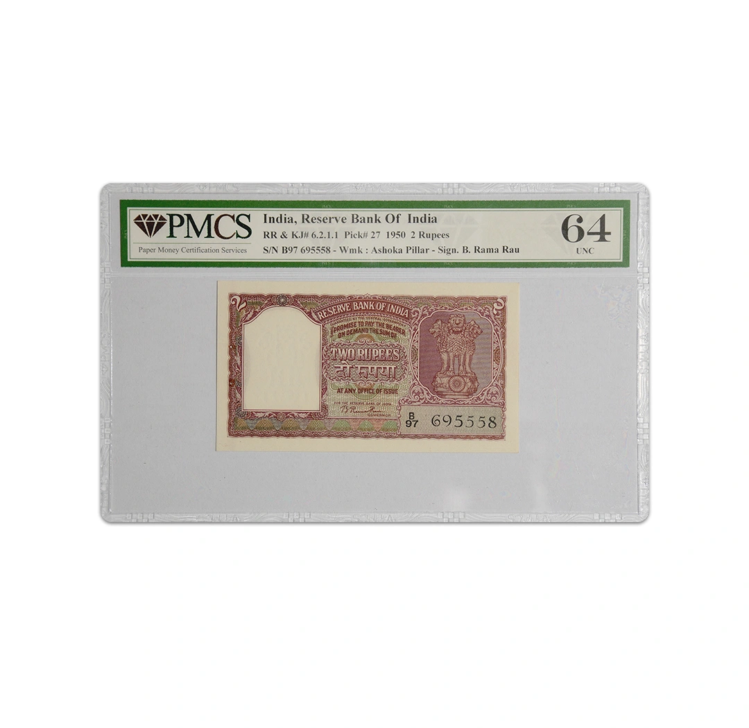 India’s Rare First 2 Rupees Note 1950 B Rama Rau P-27