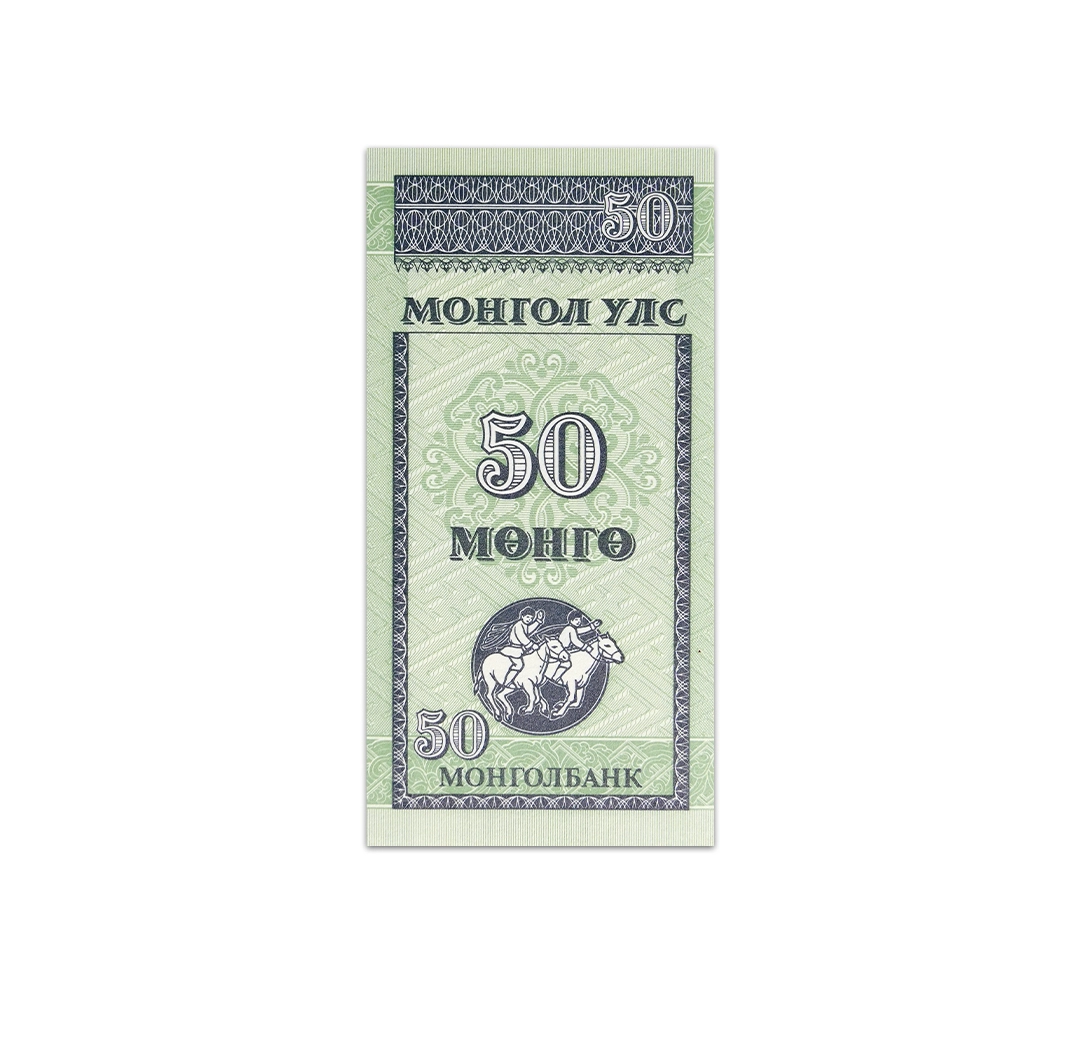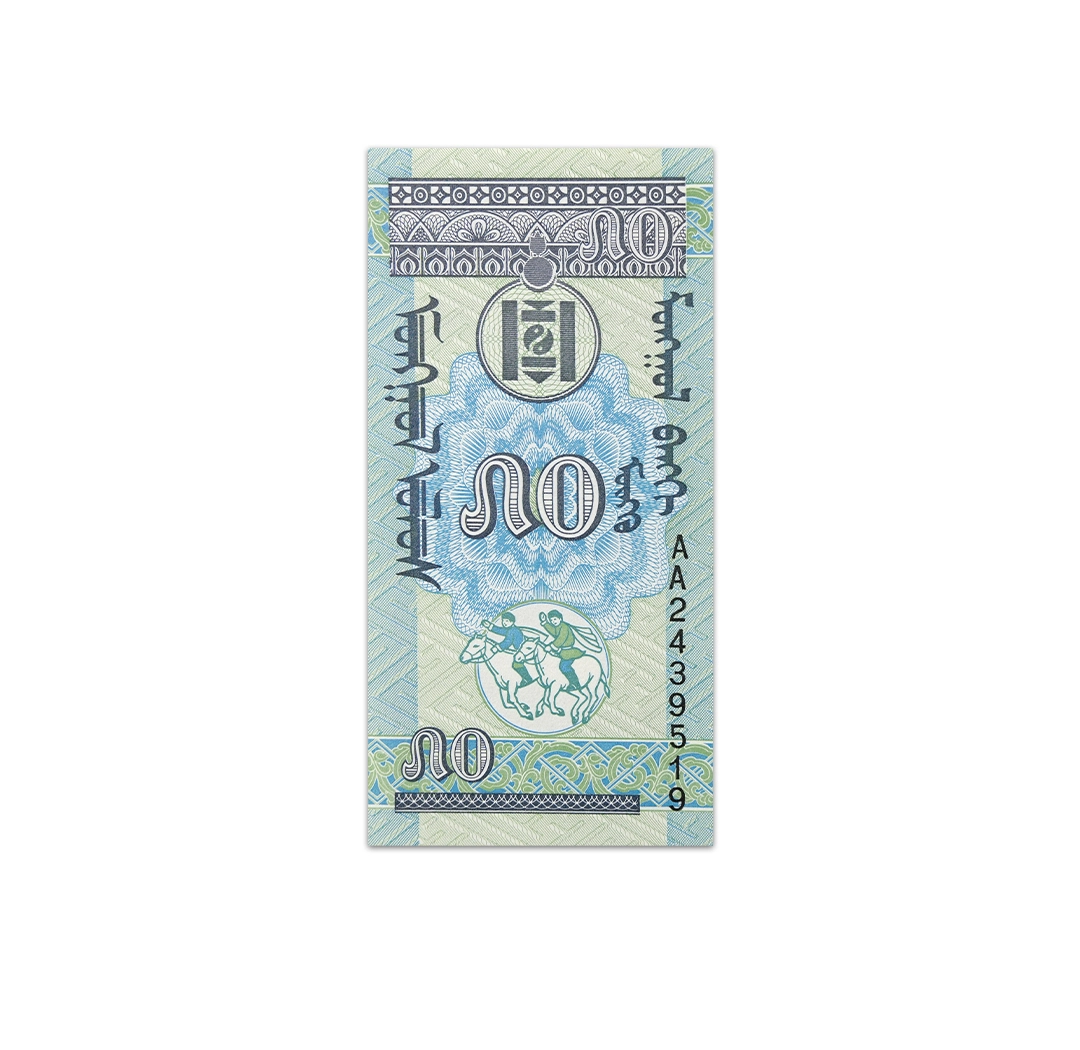 The Mongolia 50 Mongo Banknote is from the 1993 series which are vertically oriented and features national sporting themes. This 50-mongo banknote is blue and green in color and measures 45 x 90 mm. The obverse side shows two men riding horses and the Soyombo, Mongolias national symbol. The reverse side also shows two men riding horses. No watermarks or security thread were added.