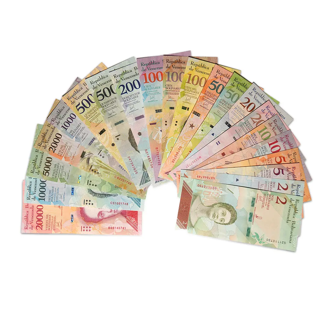This banknote set consists of 21 pieces of Venezuelan Bolivares Soberano banknotes released by the Central Bank of Venezuela in 2018 in 2 to 20000 denominations. The obverse design of these paper bills features prominent figures in Venezuelan history. Their reverse design depicts the coat of arms, a national park, and animals endemic to Venezuela. This set of notes bear a holographic windowed security thread with a demetalized BCV. They also carry a watermark that reflects Simon Bolivar and an electrotype BCV. Additionally, the notes are uniform in size of 156 x 69 mm.